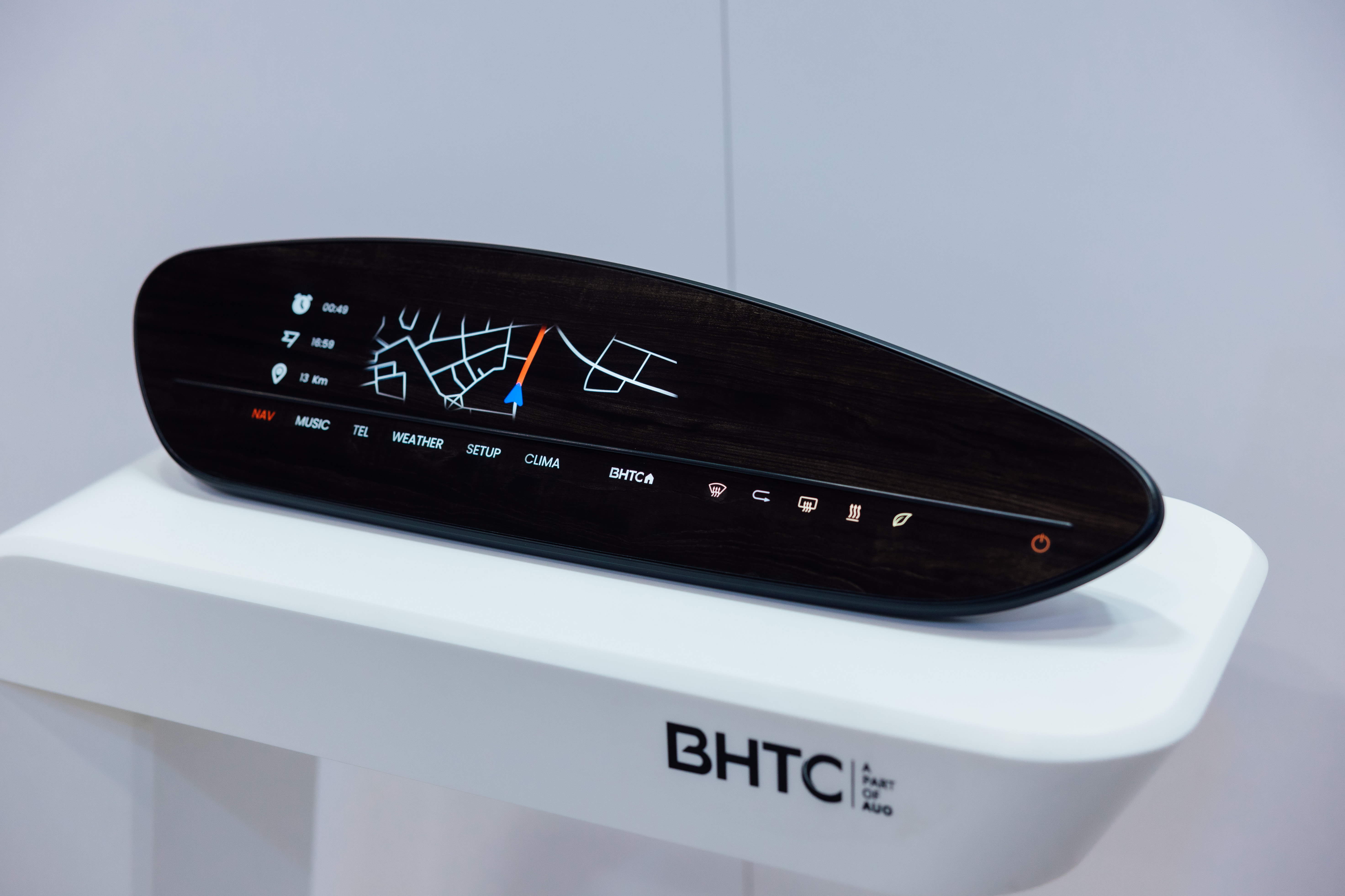 BHTC的木紋車用顯示器(Display Behind Wood)將無縫木質表面與顯示器結合后,可以融入車內設計中,提供駕駛優(yōu)質的視覺效果,加上其無邊框的設計和亮度調控,創(chuàng)造更優(yōu)質的車內體驗。